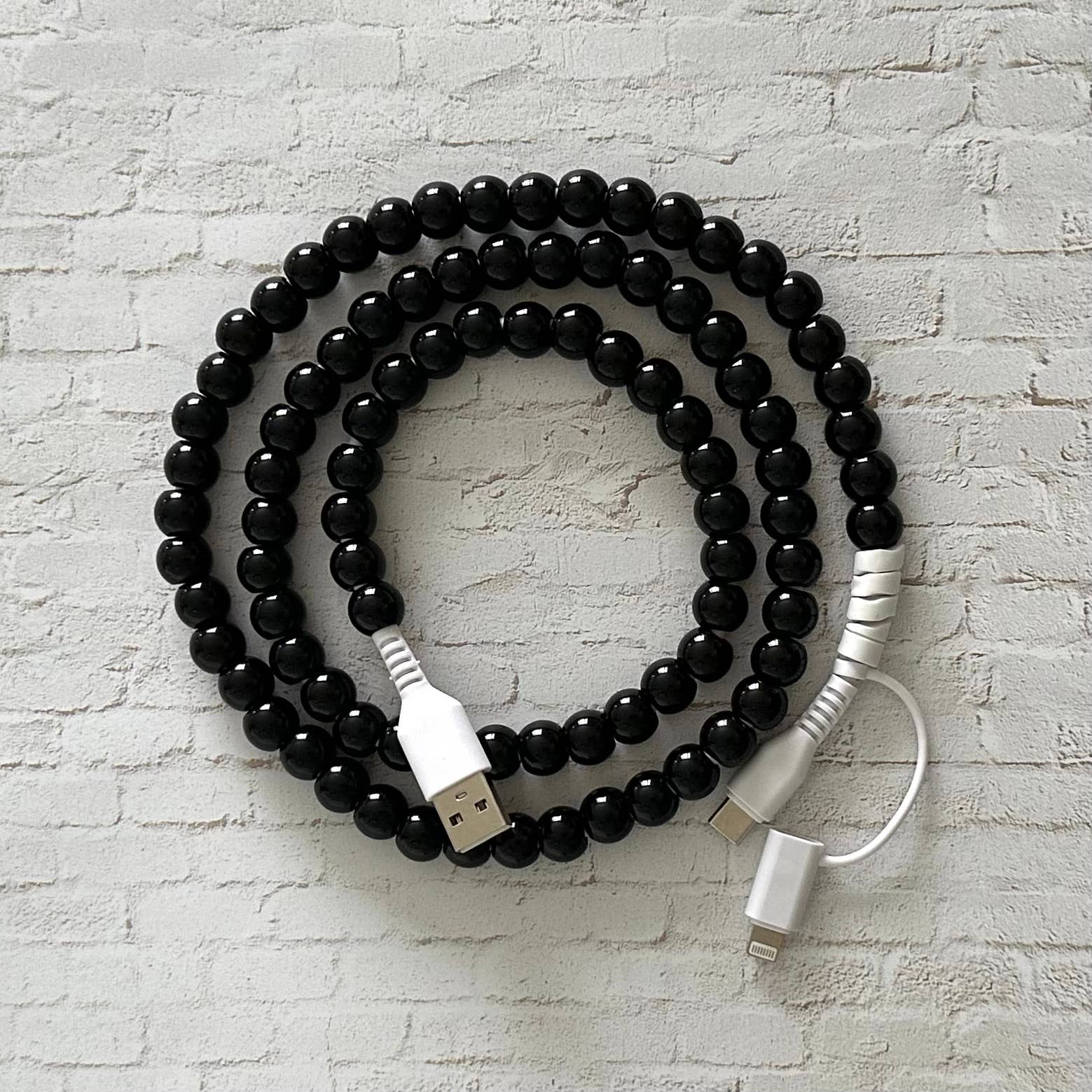 2 in 1 USB-C Cord Beaded Phone Charging Cable Black
